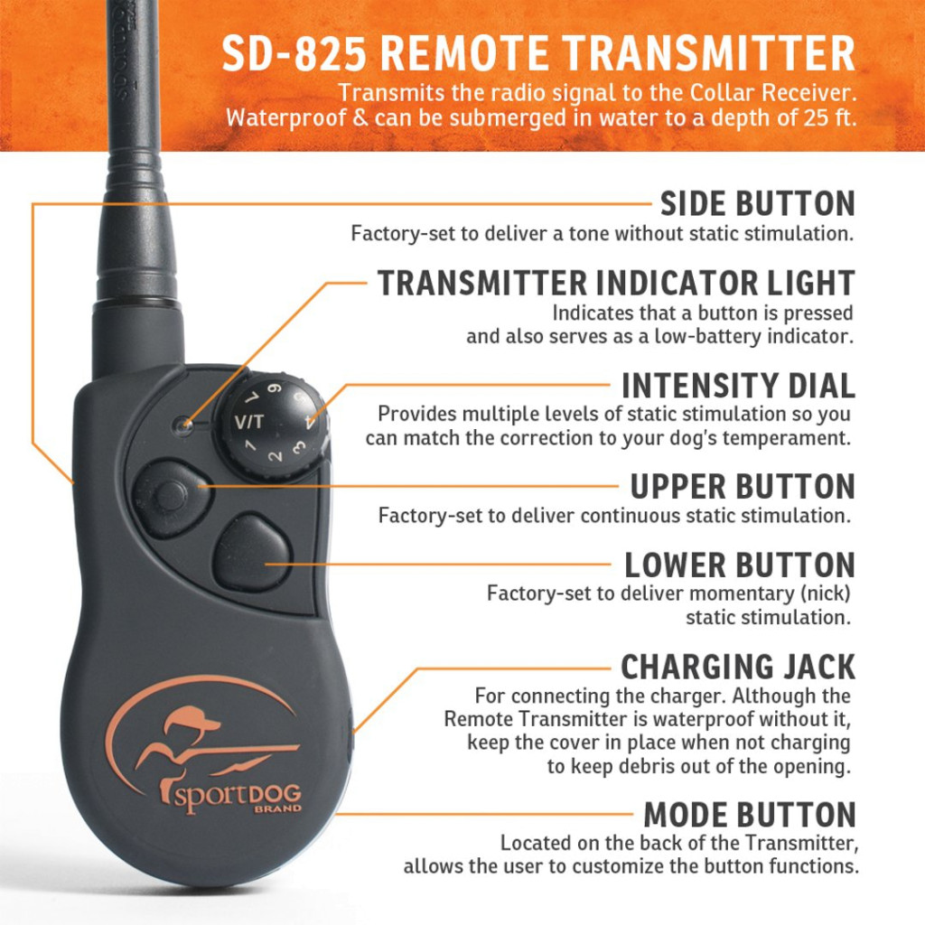 The SD-825 can be easily expanded to control up to 3 dogs by adding SportDOG Add-A-Dog collars.